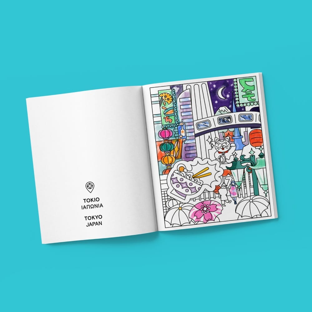 Αυτό το συναίσθημα προσπαθήσαμε να μεταφέρουμε μέσα σε αυτό το colouring book. Με την κάθε εικονογράφηση σε καλούμε να χρωματίσεις ένα μέρος του κόσμου, να το εξερευνήσεις και να χαθείς για λίγο σε αυτό.